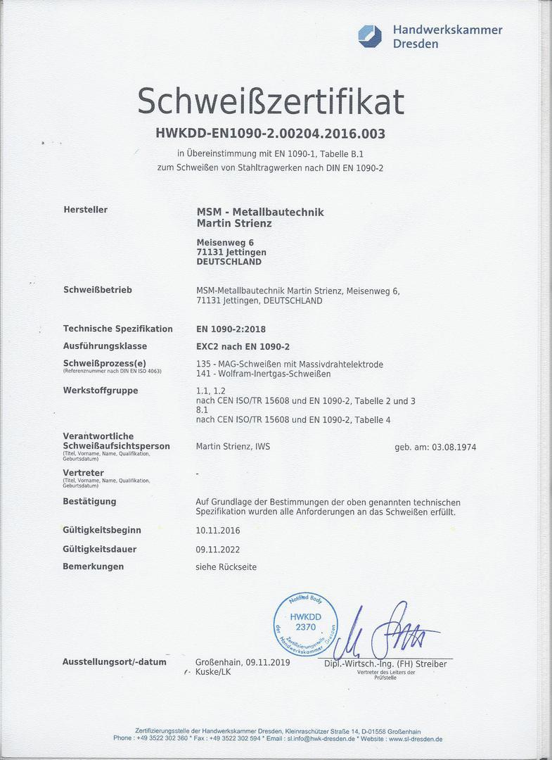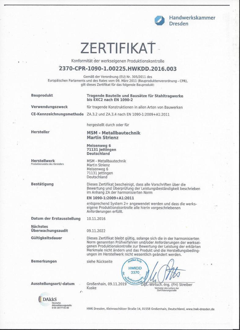 Stand der Technik und dem aktuellen Regelwerk DIN EN 1090-1 und DIN EN 1090-2 erfolgt,